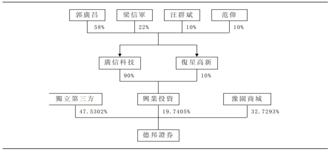 图表3:2009年复星系内部股权变更后的德邦证券持股结构